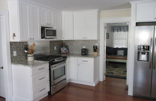 the newly renovated guest house comes complete with a bedroom, sitting room, full bath and kitchenette Have breakfast and coffee while waiting for the main house to wake up. Perfect for grandparents (no stairs) or extra friends.
