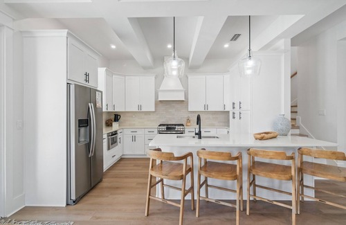 inside, you'll find a thoughtful layout that makes it easy for everyone to come together Four king bedrooms give plenty of privacy for adults, while two bunk rooms are a fun spot for kids or teens to make their own. The main living space feels open and airy, with a chef's kitchen that flows seamlessly into the dining area and living room. It's the perfect setup for sharing meals, playing games around the table, or simply enjoying time together without ever feeling crowded.