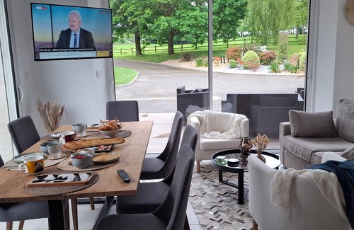 Elegant B&B in the Bay of Mont Saint-Michel is located in Saint-Quentin-sur-le-Homme. Elegant B&B in the Bay of Mont Saint-Michel provides accommodation, featuring Bedding/Linens, Wellness Facilities, Fireplace/Heating, among other amenities. This Bed & Breakfast features Bedding/Linens, Wellness Facilities, Fireplace/Heating, to make your stay a comfortable one.