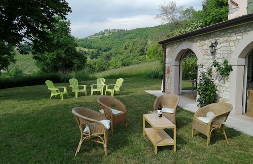 at guests' disposal there is a large green area equipped with deck chairs and a large patio equipped for lunches and breakfasts, particularly pleasant for relaxing moments sipping good local wine and admiring the view of the green hills.