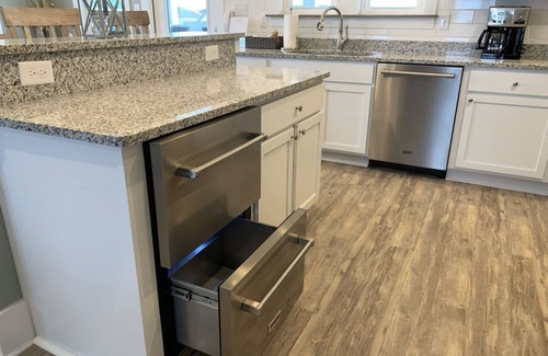 Free Pool Heat with stays of seven nights or more for September and October 2025!--New for 2025--No Fee Payment Plans--Monthly Payment Plans available for 2025 stays of 7 nights or more! Contact us for more details! New Improvements for May 2024--Elevator access to all levels of home! Private pool open for 2024 season thru December 1, 2025 (weather permitting). Brand new home for the 2020 season in the Ocean Lakes Section of Ocean Sands. Less than two minute walk to the beach access. Private pool with option to heat it in the spring and fall for an additional fee. Heated pool, hot tub, tiki bar with outdoor television, spacious living areas for the entire family. Also included; enjoy the Ocean Lakes Pool and Tennis club; a short three minute walk. Upscale furnishings, no detail is overlooked in this home. Ground floor features a rec room, foosball table, full bath and adjacent built in bunk beds (two twins over two fulls), full laundry room, mini fridge with freezer, great for pool drinks! Second floor features a king master suite with private bath and private balcony, a queen suite with private bath and private balcony, two twins with access to back deck, queen with access to bath deck and a full bath. Third floor features kitchen with granite countertops and stainless steel appliances including additional refrigerated storage in below counter beverage center. Everything you need to cook a feast for your family beach vacation! Living room with access to street side deck and pool side deck, powder room, king master suite with full bath and access to private deck. Additional powder room at split level and cozy ships watch room for reading or surfing the internet. All bedrooms have wall mounted flat screen smart televisions. The pool itself is 12'x25', depth is 3’6” to 5’6”. It has a concrete deck around it and then a beautiful area with artificial turf for lounge chairs etc. Pool heat is available in the spring and fall for an additional fee of $50/night. This home also has an outdoor covered tiki bar area with bar height outdoor chairs, propane grill and a television behind the bar. The entire area is fenced and private to this home. This home is adjacent to three other homes that can be rented together for a total of 23 bedrooms for families vacationing together. Off street parking for approximately four vehicles is provided at the home.