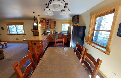 elk lodge is a spacious 1800 sq ft. cabin in Timberline Meadows, perfect for up to 9 guests. This retreat features 3 bedrooms, a loft, and 2 bathrooms, with mini-split heating/AC and air purifiers in the bedrooms. Enjoy ski-in/ski-out convenience with direct access to the Methow Trails system, just a short walk away. The cozy living room with a gas fireplace opens to a fully equipped kitchen.