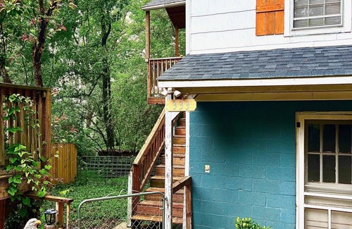 Enjoy all the town of Elkin, North Carolina, and the surrounding areas, have to offer from the comfort of this two bedroom, one bathroom apartment that is located within walking distance of Main Street. The space provides all of the amenities you expect and more including enclosed yard space for pets, Wi-Fi, streaming services, a full kitchen with dishwasher, and free use of laundry units. This garage apartment is located on the same property as the host's private residence but is a separate and private unit with it's own parking. The apartment has a fenced in area for pets to be secure - there is no extra fee for guests with pets but we do appreciate being provided the number and size of dogs coming to stay. The master bedroom offers a queen size bed while the second room has a full-size bed. The kitchen is well stocked with spices, coffee, and cookware; and also has a roll-away kitchen island and bar stools. The living room provides entertainment through a smart tv equipped with a Roku streaming device and the hosts provide access to Netflix and HBO Max. Guests can also use the Roku device to log into any other subscriptions they may have. There are stairs from the ground level driveway to access and enter the apartment. Guests can enjoy grilling out on a propane grill on the recently added exclusive deck.A short walk away, you will find the Elkin Farmer's Market, restaurants, antique shops, plenty of bars and restaurants, and even a launch point for kayaking the Yadkin River! The Elkin Vine Line will also pick you up and drop you off from the apartment!Come explore the foothills of Appalachia today!.