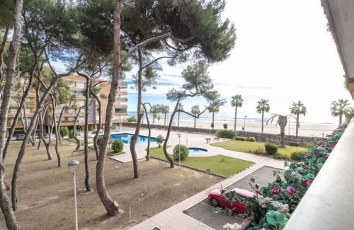 Torredembarra 18 km from Tarragona: Very large apartment block "Els Pins", surrounded by trees. 50 m from the sea, 20 m from the beach, direct access to the beach. For shared use: large garden (fenced) with trees, 2 swimming pools angular (20 x 8 m, seasonal availability: 10.Jun. - 20.Sep.) with salt water. Children's pool, outdoor shower. In the house: lift. Parking at the house on the premises. Shop 150 m, grocery 150 m, supermarket 250 m, shopping centre 19 km, restaurant 150 m, bar 150 m, bakery 500 m, café, pedestrian zone 50 m, 8 minute walk to the centre, bus stop 50 m, railway station "Torredembarra Renfe" 100 m. Sports harbour 700 m, golf course (18 hole) 13 km, tennis 2 km, riding stable 2 km. Nearby attractions: Port Aventura 30 km, Aquopolis 35 km, Jungle Trek 8 km. Well-known lakes can easily be reached: Pantano de Foix 33 km, Bassa de les Olles 85 km, Embalse de Siurana 60 km. Hiking paths: La Musara 56 km, Ronda verda del Baix Gaia 5 km. Please note: suitable for families. The owner does not accept any groups. The owner does not accept any youth groups. Main road 600 m from the property. Airfield 30 km from the property. Additional accommodations can be booked. Neighbourhood highly sensitive to noise. Quietness and good behaviour expected.