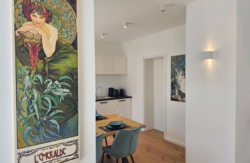 the apartment is stylish but also practically furnished You will find a number of extras here that far exceed the standards of normal holiday apartments. The heart of the apartment is the cozy living room with adjoining dining area. A comfortable sofa bed offers enough space for large groups. You will also find a smart TV with a sound system and plenty of streaming options, as well as a Switch with a varied selection of games. Here you can relax in a beautiful ambience or argue over a multiplayer game. Real plants and great attention to detail make the apartment a lot more homely than other accommodations.