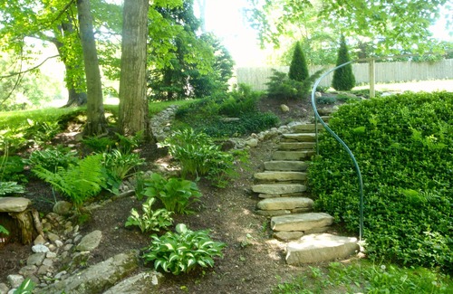 the driveway to the main house circumvents the 30 stone steps up from main road, and you can park very close to the cottage for loading and unloading The house is great, but what is outside your door is magical. Tyringham Valley is one of the most scenic towns in the Berkshires. You are only steps away from Ashintully Gardens with its blend of majestic manicured beauty and spectacular wild forested mountain side land. Hikes of McLennon Reservation available are accessible by foot from the house.
