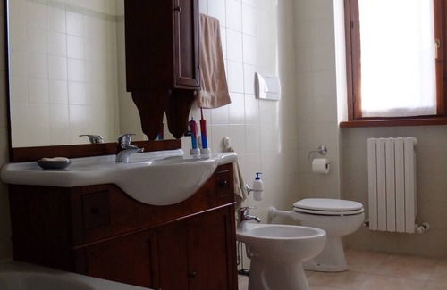 Nestled in Viano, this delightful apartment offers 2 bedrooms - one with a queen bed, bunk bed, and twin bed. With amenities like a hair dryer, washing machine, WiFi, and heating, guests will feel right at home. The 2 bathrooms feature a bidet, shower, bathtub, and hair dryer for added convenience. Experience the magic of Viano at our fabulous apartment..
