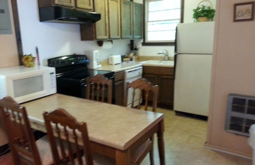 for your stay, you enjoy a simple and comfortable mountain cabin with a gas log fireplace, 2 bedrooms/1 bath, living room & kitchen The kitchen is equipped with dishes, pots/pans, stove, refrigerator, toaster, coffee maker, and microwave. Linens and towels are provided for the bed and bath.