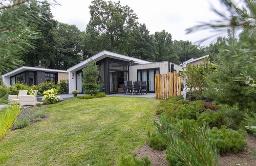 Enjoy your holiday in this luxurious and spacious sustainable Bos Lodge 75 6 persons with hot tub. enjoy the pond!