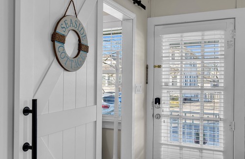 as you step into our seaside cottage, you'll be greeted by our cozy living space with a rustic-beachy vibe Perfect for relaxing after a sunny day at the shore.