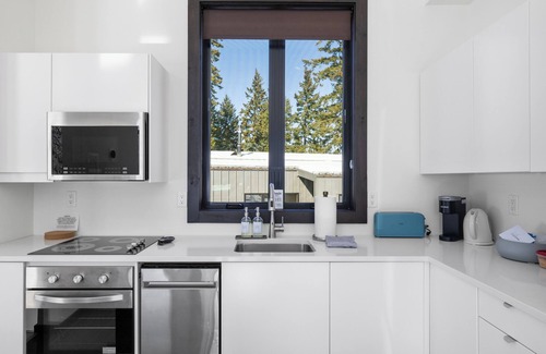 Escape to our newly built, charming waterfront guesthouse nestled on Cle Elum Lake. Modern retreat boasts ceiling to floor windows and breathtaking lake/mountain views. Our Cascades Mountain all-season getaway features sunny summer weather and a wintery wonderland. This vacation rental is separate from the owner’s personal vacation home on the property. While the owner’s home is seldom occupied, both residences are designed for complete privacy with separate entrances, ensuring a peaceful stay for you. Kitchen, washer/dryer, electric fireplace, walk-in shower, and outdoor patio overlooking the lake. Easy access to Snoqualmie Pass, as well as shops, restaurants and a movie theatre in the quaint nearby town of Roslyn. Our unit is perfect for a romantic getaway, or for use as a hiking destination for 2-3 hikers looking for a cozy place to rest between adventures. The space is also ideal for a small family (1-2 children) who want to spend quality time together and enjoy the great outdoors. This is a small rental with cozy bedrooms and does not lend itself to a party atmosphere. The space is 635 square feet, featuring two bedrooms and one bathroom with a walk-in shower. The main bedroom offers a comfortable queen bed, while the second bedroom has a bunk bed with a full bed on the bottom and a twin bed on top; this room is perfect for your children! Please note that this space requires access via a staircase only. There is a small patio with two adirondack chairs. The unit boasts a sweeping view of the lake and beautiful mountains, creating a serene and picturesque setting. The living room is equipped with a Fire TV (smart TV), an electric fireplace for a warm ambiance, a small couch, and a lounge chair. It also includes a selection of board games and children’s books. The bathroom features a walk-in shower with glass panels. The kitchen is both cute and functional, equipped with an electric stove, oven, sink, microwave, fridge/freezer, and an island with four barstool chairs for dining. Amenities include a Keurig coffee machine with a few pods, a tea kettle, toaster, blender, cooking pots and pans, and a variety of kitchen essentials such as plates, cups, cutlery, cutting boards, a knife set, pizza cutter, measuring spoons, and more. Assorted teas, salt, pepper, spices, olive oil, foil, storage bags, and parchment paper are also provided. Additionally, the hideaway offers a small washing machine and dryer for your convenience. For families with young children, the amenities also include a collapsible highchair, baby gate, diaper rash cream, shampoo, conditioner, lotion, hairdryer, children's books, stuffed animals, and a few toys (Lincoln Logs). The area is known for its wonderful hiking trails, snowshoeing, snowmobiling, fishing, golf, spa, and bird watching. Hex Mountain, located right across the street, offers a steep but rewarding hike with 360-degree views from the peak. On a clear day, the Hex Mountain hike allows you views of Mount Rainier, the Teanaways, the Stuart range, and many other surrounding peaks. The neighborhood is within a quiet, gated community comprised of just a handful of homes, making it perfect for a quiet getaway. This small community is home to beautiful wildlife that is often seen roaming around the area, including turkeys, deer, elk, bald eagles, raccoons, coyotes, and occasionally bears and mountain lions. We offer a complimentary can of bear spray for use while you stay at our place. Please note we do not have a BBQ out of an abundance of caution for fires. The forest gets very dry and experiences high winds..