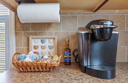 -fully equiped kitchen with gas range, keurig and coffee, dishwasher and everything needed for all your culinary adventures Attached one car garage. NOTE: A new driveway will be installed August 10th so parking will not be available on drive/in garage until August 20th. Parking still available in back drive.