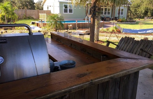 less than 10 minutes drive from i-75, the house has 3 bedroom and 2 bath and a carport to park also a pool deck with a big above ground pool and a bar/outdoor kitchen and large pond where you can do fishing