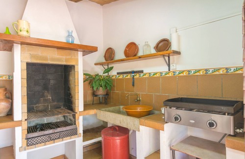 welcome to this beautiful house, with a private 8x4 salty swimming pool, with a deph ranging going from 1 to 170m, where you will swim while enjoying the wonderful landscape, the extraordinary views of the close mountains of the tramuntana close to Bunyola. The swimming pool is surrounded by grass and you can sunbathe at one of the six hammocks. An external shower is ideal for a quick refresh. There is a fantastic covered terrace just close to the entrance, and a terrace covered with canes, both ideal places to enjoy a nice dinner with your loved ones. also, you will love the little house beside this area equipped with a kitchen, barbecue and an oven!
