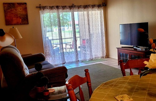 enjoy a serene and comfortable setting from a 2 bedrooms, two and an half bath townhouse overlooking the deep creek golf course