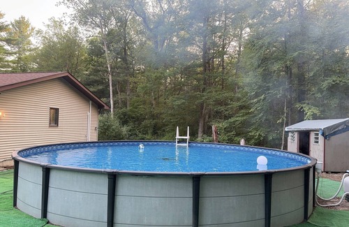 Discover a peaceful oasis perfect for family getaways at our serene 3-bedroom home, complete with a private pool and spacious grounds. Nestled on 2 acres in the heart of Sparrowbush, NY, this retreat offers the ideal blend of relaxation and adventure. This home away from home sleeps up to 8 people a king size bed with two pull out twin, two twin beds with an extra pull out twin, and a queen bed with a pull out twin for a peaceful night's sleep. Relax in the pool surrounded by nature. We'll be available to answer any questions while you stay at our place..
