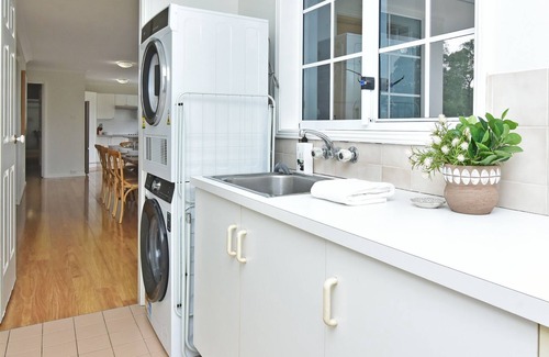 the beautifully appointed home features four spacious bedrooms, each with built-in wardrobes and ceiling fans for comfort Two fully renovated bathrooms, both with built-in bathtubs, ensure everyone can relax in style. The property also boasts two kitchens, with the main one fitted with stainless steel appliances and electric stovetops—perfect for preparing meals to enjoy with your group.