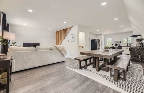 welcome to our renovated and professionally decorated a-frame, perfect for family gatherings or romantic getaways! enjoy exciting a clean space with comfy beds and furniture, huge dining area, amenities like ping pong, arcade games, and a fun "barn" for activities! stunning views from our hot tub and decks creating lasting memories in this ideal retreat everything from the furniture to the linens were carefully chosen to ensure a 5-star stay and maximize comfort, aesthetic, and functionality!