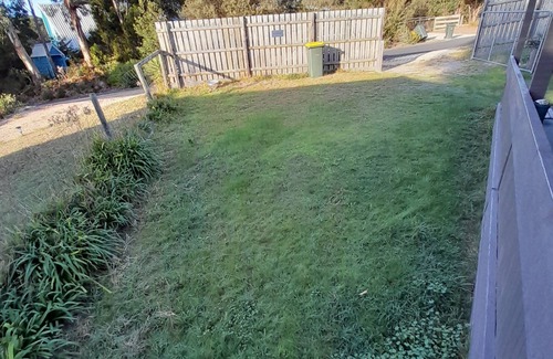 Pet friendly Beachouse centrally located 2min walk to sandy Lake Victoria and petrol station. 90 Mile Surf Beach is a super close outing at a budget friendly price. Suited to families or couples that don’t want to pay expensive prices. Catering up to 5 people with 2 bedrooms each containing a double bed (optional fold out bed/couch in the lounge). With 3-star facilities, ample equipped kitchen, heating/cooling, linen, digital TV, undercover BBQ area, along with outdoor trampoline and swing set..