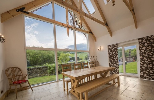 This accomodation features: Master bedroom with kingsize bed, luxury ensuite wet room and glazed doors to the terrace enjoying spectacular views to the north of the Highland Perthshire mountain range; a large, comfortable sitting room with seating for 10, a table for cards and board games, a large HD TV with blueray DVD player, freesat, Ipod dock, CD and radio and wifi broadband internet access; large dual aspect windows with views over the Scottish mountains to the north and farm paddocks to the south; a large and well equipped kitchen with an open pass over to the vaulted ceiling dining area with large oak dining table and chairs for 10, wood burning stove and south facing windows overlooking the farm paddocks to the south; a utility room with washing machine, dryer, clothes rail for outdoor coats and a shower for rinsing off if you’ve become particularly muddy, a downstairs WC/cloakroom, under-floor heating throughout the ground floor; an enclosed private garden and patio with picnic table, BBQ and reclining chairs; (first floor) a second master bedroom suite with superking bed, dual-aspect windows enjoying views over the Scottish Highlands and farm paddocks and a luxury ensuite bathroom; a Mamas & Papas cot in the vestibule if required; bedroom 3 with kingsize bed, walk-in wardrobe and Juliet balcony with views to the north over the valley to the mountains, bedroom 4 with twin beds, wooden cot and views to the farm paddocks, a modern family bathroom..