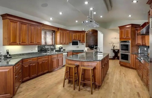 you will love the massive space of nearly 19k sqft that will accommodate your guests comfortably in this ranch style home It offers so much privacy, space and luxury throughout. Multiple kitchen spaces, private office, lounge rooms and more. your group will certainly enjoy having their own private bathroomineachbedroom