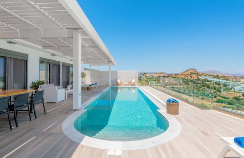 designed with traditional aegean architecture in mind, this villa has been constructed on a hillside that provides guests with stunning sea views