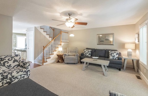 This distinctive two-bedroom, 2.5-bath executive condo is one of only five of its kind and among the newest on the Green Turtle Bay property. Spanning approximately 1,480 square feet, it offers thoughtful design and comfort throughout. Enjoy two screened-in decks overlooking the peaceful pond, plus convenient access to the walkway leading to the GTB beach. The inviting living room provides generous seating (note: no sofa sleeper) and a cozy fireplace. Upstairs, the master suite features a king bed and a spacious screened-in deck with lounge seating—perfect for relaxing. The second bedroom includes two full beds and a private full bath. Entertainment is easy with large-screen TVs in the living room and both bedrooms, plus a DVD player. A fully equipped kitchen with full-size appliances, a gas grill, and modern amenities complete the space. Please note: this is a non-smoking, pet-free condo..