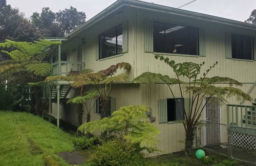 Escape to your own piece of paradise nestled within the lush and serene embrace of the native Hawaiian forest. This spacious 3-bedroom house offers a unique opportunity to reconnect with nature and unwind. Immerse yourself in the vibrant ecosystem right outside your door, where the gentle rustle of leaves and the soft chirping of wildlife provide the perfect backdrop for experiencing Hawaii's native forest. Discover the beauty of Volcano from this delightful 3-bedroom house. With 2 queen beds, 2 full beds, and a cozy futon, guests will feel right at home. Enjoy the convenience of heating, an iron, washing machine, and WiFi. The 2 bathrooms offer both a bathtub and shower for ultimate relaxation. A spacious bonus room with an additional queen bed provides extra sleeping capacity for large groups. A great place to call homebase while you're away, we hope you enjoy your stay..