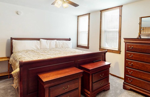 upon entry, you'll be met with a cozy atmosphere and lots of natural light Relax and make yourself at home by resting on the plush furniture or watching a favorite movie on the large TV. Hobby chefs will love preparing grand meals and on-the-go snacks for skiing in the sophisticated kitchen, equipped with stainless steel appliances. Plenty of room awaits everyone, as this home is perfect for large groups or family reunions, with its array of spacious bedrooms and comfortable beds. Gather around the firepit to roast marshmallows as the stars come out to dot the sky, making memories that'll last a lifetime.