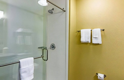 our friendly and courteous front desk staff will welcome you We are here to make your stay as comfortable, convenient, and pleasant as possible. Take pleasure in our room's comforts and conveniences, including premium bedding, a flat-screen TV, a refrigerator, a coffee maker, a workspace, and a hairdryer. Our fitness center and indoor pool are among the facilities that will enhance your on-site experience. Miscellaneous fees may be subject to additional costs after booking.