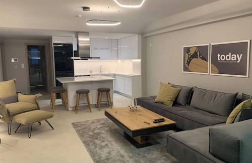 6th floor corner apartment in a new modern highrise in the center of athens, on the blue line metro Uninterrupted city views from the living room balcony and the bedroom balconies. The apartment is brand new, with tasteful furniture and all the amenities. Indoor secure underground parking comes (for a regular sized car). enjoy stunning sunset views of the parthenon, the acropolis and the athenian skyline, like a true athenian!