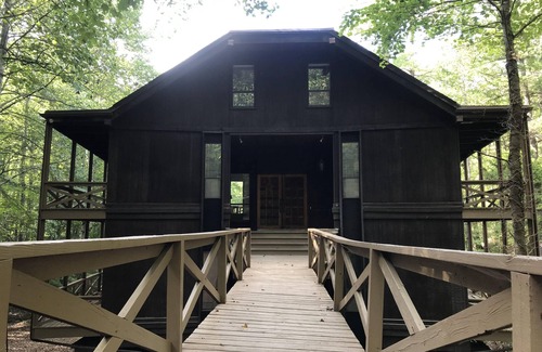 the house over the pond is accessed by way of a sturdy, wooden bridge we’ve recently reinforced We’ve provided plenty of outdoor lighting to make accessing the property and your vehicles easy at night.