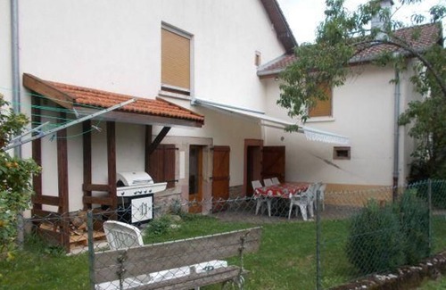 to do: hike on the plateau des 1000 etangs TGV train station 35 km away. Montbéliard Christmas Market (50 km) and Alsace (80 km). Sleeps 8. In a hamlet in the Vosges Saônoises, this gîte is located in a former forge adjoining the owner's home. On the ground floor, it features a living/dining area with fireplace, a fitted kitchen with access to the terrace, a walk-in shower room, a toilet, and a laundry area. First floor: 1 bedroom (1 double bed, private shower room, and toilet), 1 bedroom (1 double bed), and 1 bedroom (2 single beds + 2 bunk beds). Enclosed outdoor lawn area; electric/wood heating. Baby equipment available (high chair, mattress, crib, and bathtub). Raclette and fondue set. Wi-Fi. CHARGES NOT INCLUDED. Fishing lodge.