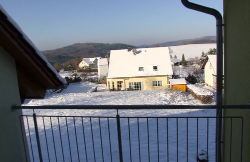 The apartment is located on the top floor with view of the countryside. It is equipped with two bedrooms, a bathroom with tub / shower, a kitchen with dining room and a living room with balcony. The total area is 65 sqm and has a visible truss. The nearest supermarket is 2 km away. The town of Weinheim, with its palace gardens, Hermannshof and exotic woods is a nice attraction. A trip to the Miramar with Kristalltherme is recommended. A stroll through Heidelberg and Mannheim is also perceived like. The summer toboggan run and the climbing forest in Wald-Michelbach are a special attraction. In this region, there is much more to discover..