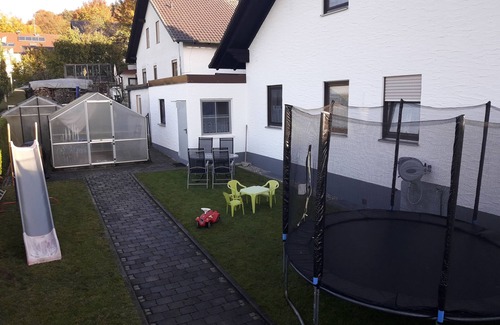 in our inviting, child-friendly apartment on the 1st floor of our quietly located apartment building on 85sqm, there is enough space to relax The equipment includes a fully equipped kitchen, which is open to the cozy living and dining room. Two separate bedrooms are provided for dreaming. The bathroom is equipped with a shower, tub and underfloor heating. The separate toilet completes the sanitary area. For the nice days there is a sunny, covered and furnished south-facing balcony with awning and a garden area, of course with garden furniture, gas grill and various. Play equipment for the little ones.