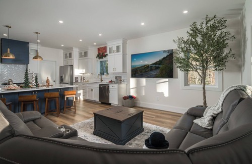 primary bedroom – indulge in luxury with a king bed, a spa-like ensuite bathroom**, and a 75" smart tv, perfect for unwinding after a day of adventure