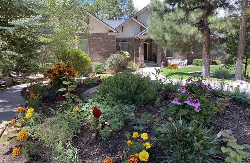 The ultimate getaway for your family or group nestled at the end of a cul de sac deep in the pines of Show Low. This property sitting on 1.2 acres of beautiful Ponderosa Pines has it all! Main level has two masters, additional bedroom & office. The main living space offers spectacular views of the forest where deer, elk, & other wildlife can be seen. Two decks can be accessed from kitchen/dining/living area that overlook the forest. Main living area is furnished with large sectional, wood pellet fireplace, & big screen (65") TV. The adjoining gourmet kitchen is a chef's dream with Viking & Wolf gas stove, griddle and ovens. Gorgeous waterfall island with barstools. Large wood dining table can seat 12. Pamper yourself in the Grand Master Bedroom by enjoying a luxurious chair massage followed by a relaxing soak in the garden tub overlooking the forest or shower in the multi-faucet walk-in oversized shower. Then, let the fun begin downstairs with retro table-style arcade games and Indiana Jones Pinball Machine. Electronic Roland Drum set, Steel Drum & Electric Roland Keyboard add to the excitement. Big Screen (65")TV, dvd player, large popcorn machine, fridge & microwave make this space complete. Your little ones will spend hours of fun in the playroom under the staircase complete with play kitchen, chalkboard and children's books. Downstairs opens up to ground level grass yard available for croquet, cornhole, or other yard games. A hammock awaits you in the forest as you watch for birds & squirrels, or keep an eye on the kids as they enjoy playing in the cool of the pines on the swing set/climbing wall/slide play structure or in the playhouse just their size! Follow the path to the Meditation Garden and spend some time letting the stressors of your life melt away. When it's time for s'mores, you will find a gas powered fire pit overlooking the back yard next to the basketball court. Don't want to miss your work out while vacationing? No worries, the 3 car garage is stocked with free weights & a bench and a TV too, still allowing you to park two cars inside. In the garage you will also find fishing gear, & camping chairs . For your peace of mind, this home contains a emergency back up natural gas powered generator that will automatically engage in the case of a power outage. If you can tear yourself away from this beautiful home, you will enjoying nearby golfing, hiking, fishing, boat rentals, antiquing and exploring in the White Mountains. Visiting in the winter months? Sunrise Ski Resort is an hour away, and there are plenty of sledding areas nearby. There are 4 outside security cameras (front yard, backyard, driveway, basketball court) and Ring doorbell cam..