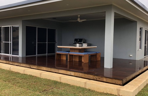 only 5km to the town centre, 1km to the beach and 5 min to the airport, the serenity of rural living can be soaked up from the front deck each evening, from big, open-plan living areas that open out onto the bbq area