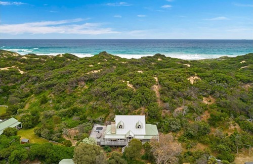 offering two living areas, plus four generously appointed bedrooms, two bathrooms and two powder rooms equally allocated over each level, the heart of the home is the main open plan living area downstairs Anchored by a stunning contemporary kitchen with vast island bench and walk in pantry, bi-fold doors open to an idyllic entertaining deck with hypnotic sound of waves crashing just over the sand dunes behind.