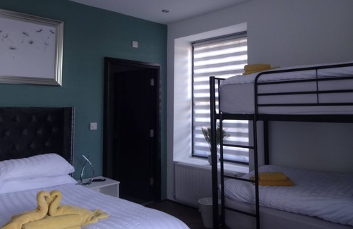 this modern 7 room farmhouse has rooms for 2 to 5 guests each with their own en-suite shower rooms, tv and tea and coffee making facilities Each room has a double bed with the family rooms having the addition of a bunk bed. Breakfast is served daily in the Bistro. Complimentary access to the gym is also included. Private on site parking..