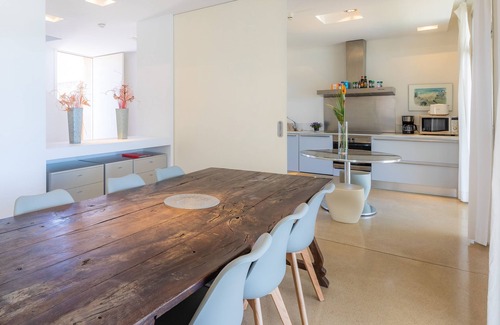 In Son Servera, the Finca Port Nou is located in an idyllic location and just a few meters from the sea. Its contemporary architecture as well as its modern, luxurious interior make it an ideal holiday accommodation. The living area of the Finca (355 m²) extends over three floors and offers an elegant living/dining room in white and cream tones, a fully-equipped kitchen, 3 bedrooms (2 with 2 twin beds each and a master bedroom with double bed), 3 bathrooms as well as a half-bath. It can therefore accommodate 6 people. Amenities also include Wi-Fi, fans, a fireplace, satellite TV, a baby cot and a high chair. Outside, the rooftop terrace, balcony and terrace with garden are facing the sea, so you can enjoy a breathtaking view and listen to the rhythmic sound of the waves. Enjoy freshly prepared meals on the covered terrace with a barbecue, sunbathe on the rooftop terrace or wind down mild summer evenings with a glass of wine and a view of the sparkling water. The absolute highlight is the 36 m² private pool, which invites to a refreshing cooling. Surrounded by a well-kept lawn and equipped with comfortable sun beds, this garden becomes a real holiday oasis. A ping-pong table provides great entertainment. A private access to the quiet natural beach is located at the back of the garden, which is surrounded by lush hedges. A selection of restaurants are 500 m away and a supermarket is 1.8 km or a 4-minute drive away. Within a few minutes by car you can reach the holiday resorts Cala Millor (3 km), Cala Rajada (16 km), Canyamel (12 km) and Arta (14 km). During the high season the coastal resorts offer a wide selection of water sports.