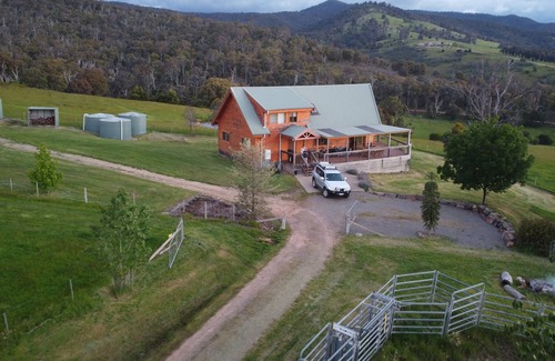 Modern 4 bedroom log cabin situated on 30 acre farm just off the Howqua Track, Merrijig. 15 minutes from Mansfield and 10 minutes from the Mt Buller - Merrimbah gate.