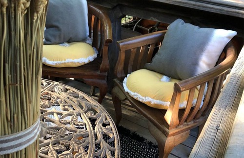 please note, the bathroom and shower are below and unattached; be assured, they are not shared and are yours alone Also note, there is NO AIR CONDITIONING but there is heat from a state of the art heater. For keeping cool, there is a vintage fan which is pretty powerful and both doors to the inside of the treehouse open to make it very comfortable except during peak hours on the hottest of days. Temecula does cool off at night and always has a breeze at about 4:30 pm; also the covered truck bed patio is always pleasant. We've actually never had a person complain about the temperature, however, if you're not up for the "full monty" of glamping, you might find one of our other listings more to comfortable.