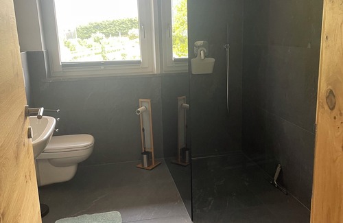 the kitchen is equipped with an oven, a stovetop, and a refrigerator, as well as a coffee maker, an electric kettle, and a microwave Bathroom amenities include a hair dryer, a bidet, and towels. And you won't have to pack extra clothes, because you'll have a washer and dryer, too. Other amenities include bed sheets, an ironing board, and heating.