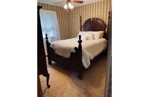 our farm has been in our family for over 100 years We have 70 unrestricted acres that you can explore and enjoy. If you live in the city and just want to get away or you are passing through from outside the area this farm offers you the ability to get outside and live without having to sacrifice the modern conveniences of our daily lives. Feel free to collect fresh eggs for breakfast or fresh vegetables as a snack or dinner. Cook outside next to a campfire or just enjoy the stream, fields, animals, scenery and quiet life. If you must work make this farm your most favorite work area with beautiful views and high speed WiFi. We are about 2 miles from town with grocery stores, drug stores and many restaurants.
