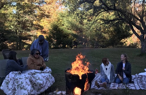 A spacious farmhouse with room for 10 has a large porch with rocking chairs, access to the pond, large yard, fire pit. Quiet, peaceful, and spacious. Room for the whole family including your four legged family members.