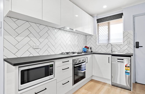this unit has been lovingly and completely updated Modern kitchen with modern appliances. Everything you need to make a home cooked meal. Blender provided for smoothies and baby food prep. Perfect for longer monthly stays, especially if you’re moving to Adelaide and need a temporary home away from home. Starter supply of basic consumables provided for your convenience.