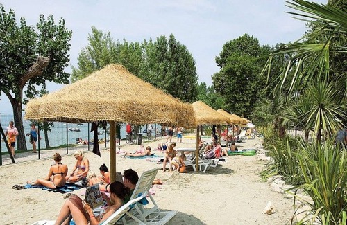 The family-friendly accommodation is located in the holiday village of Cisano, which lies on the beautiful eastern shore of Lake Garda, somewhat north of the old Venetian port of Lazise. Look forward to the long pebble and sandy beach and tell your children about the many playgrounds: there are several! In July and August, the animation team organizes a colorful program, which includes windsurfing, children's disco, treasure hunt and free tennis and swimming lessons. The holiday village also has beautiful pool facilities with slides and water features, restaurants, bar, a mini-market, wifi, animation and a mini club for younger guests. Of course, the facility also offers many sports facilities, be it on land or on the lake. In addition, the holiday village is only a few minutes away from the many leisure and water parks such as Gardaland, Movieland and Caneva. The bright and spacious mobile home Happy Standard / 2546) can accommodate a maximum of 6 people (including one child up to 12 years) and has modern furnishings and an inviting atmosphere. You will feel at home. The mobile home is divided into a bedroom with a double bed and a bedroom with 2 single beds and a high folding bed (for children up to approx. 12 years). If necessary, the seating area in the living area can be converted into another sleeping area. The kitchenette has a refrigerator, 4-burner gas stove, sockets and everything necessary for 6 people, from the saucepan to the dishes. The bathroom is equipped with a shower, toilet and sink. Mosquito nets are available on all bedroom windows. The cozy terrace with a table and chairs, a pavilion or a sun roof, 2 loungers and a grill or an electric grill plate invites you to relax. Travel cot, high chair, bed linen and towels are also available for a fee (please reserve when booking). On request, half or full board can also be booked on site. A parking space is included. Note: If you need more than one accommodation, this is usually possible with us, since we have several objects of the same house type. ARRIVAL DAY + STAY DURATION from 07/07/04 09. 2020 the arrival and departure day is Saturday or Wednesday (only bookable on a weekly basis). In the period from April 25th to 8th 05. 2020 / 30. 05.-12. 06. 2020 the minimum stay is 7 nights (daily arrival possible). In the remaining time, the minimum stay is 3 nights (daily arrival possible). Note: If for any reason you are unable to arrive on the day of arrival, check-in is also possible the following day (please notify us prior to arrival). The same applies if you want to leave earlier. Departure is also possible here the day before. However, the rental period / rental price specified for booking remains unchanged. The holiday village borders directly on Lake Garda and is one of the few holiday resorts on Lake Garda to have its own large sandy beach. This makes the beach the ideal place to relax, sunbathe, read a book or relax while the children build sand castles or let off steam in the water. If you want to quench your hunger or thirst on the beach, you can have yourself served at the bar. You can also rent canoes, bicycles and pedal boats. Here you will find two family pools and a children's pool with great bathing fun for the whole family. Slides and water games make children's hearts beat faster. The whirlpool guarantees complete relaxation for the adult guests. Afterwards you can relax on the large sun terrace in one of the many deck chairs. A well-stocked kiosk provides refreshments. LOCATION The holiday village borders directly on the beach and is therefore ideal for families with children. The location is also ideal for trips to the beautiful villages of Lazise and Bardolino. FAMILY FRIENDLY With the animation team, the little guests can experience new adventures every day. You can choose what you like best, be it tennis, swimming, aerobics or canoe courses, soccer and volleyball tournaments, water skiing, mini golf, beach games or dance evenings. But if you prefer to take it easy, it is a good idea to sunbathe on one of the swimming pools or on the private beach. LEISURE AND SPORT The holiday village has a sports field / soccer field, tennis court, table tennis and of course many sports facilities by the pool and lake. SHOPPING In the mini market you will find fresh fruits and vegetables, bread, cold cuts, cheese and other groceries. The complex also has a bazaar with tobacco products, newspapers, children's toys, beach clothes, souvenirs and camping items. CATERING The apartment has a well-equipped kitchen with dishes, cutlery and pots. Shops are also nearby. Of course, you also have the opportunity to indulge in one of the two restaurants within the resort. The diverse Italian cuisine is waiting for you!PETS Pets are NOT allowed. SPECIAL In the high season free bus transfer to the Gardaland amusement park and the opportunity to practice paraflying. The final cleaning is to be done by the tenant. Cleaning utensils such as brooms, mops etc. are available. The accommodations are checked and thus the cleanliness is ensured. Any complaints will be charged at EUR 40. If desired, high chairs and travel cots must be ordered when booking (for a fee according to the information in the additional costs) or must be reported at least 1 week before arrival (later orders cannot be guaranteed). LOCATION AND SURROUNDINGS Cisano di Bardolino lies on the eastern shore of Lake Garda between Bardolino and Lazise. To the south of the village, the olive oil museum "Museo dell’Olio", where you can also buy a lot of culinary delights, invites you to a visit. The historic church of Santa Maria di Cisano with its well-preserved Lombard jewelry panels is also worth a visit. Every Monday there is a weekly market in Cisano, which invites you to stroll. There are many wineries around Cisano di Bardolino. The Villa Calincantus is only one kilometer from Cisano and is characterized by its quaintness. Another winery is the Tenuta Preella Lamberti, w