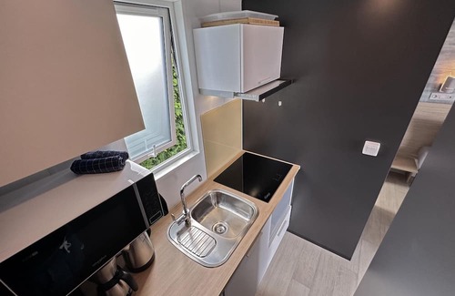 welcome to the peaceful seeblick holiday village on the shore of lake eixendorf in the heart of the upper palatinate forest This modern chalet is ideal for solo travellers or couples who value comfort and privacy. Enjoy the bright living and sleeping area with fully equipped kitchen, plus your own terrace with barbecue, garden furniture and sun loungers. perfect for relaxing days by the lake – book now and enjoy bavaria!