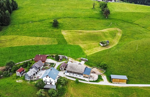 Working farm "Pichlerhof", 1'000 m a.s.l detached, surrounded by meadows and fields. Above Öblarn, in the district of Sonnberg, outside the resort, 3 km from the centre of Öblarn, in a secluded, sunny position, 19 km from the skiing area. For shared use: beautiful garden to relax. In the house: WiFi, storage room for bicycles, central heating system. 3.5 km long steep motor access (mountain road). In Winter: please take snow chains, 4x4 car recommended in winter. Parking at the house. Supermarket 3.5 km, restaurant 3 km, bakery 3 km, bus stop "Niederöblarn Murbergerweg" 3.3 km, bathing lake "Aicher Badesee" 11 km. Gondola lift 19 km. Nearby attractions: Zipline Stoderzinken 20 km, Dachstein Südwandbahn 42 km. Well-known ski regions can easily be reached: Galsterberg 19 km, Hauser Kaibling 22 km, Planai Schladming 29 km. Well-known lakes can easily be reached: Putterer See 14 km, Steirischer Bodensee 26 km, Grundlsee 39 km. Hiking paths: Sölktal Großsölk 11 km. On the estate animal husbandry. Please note: the owner lives on the same property.